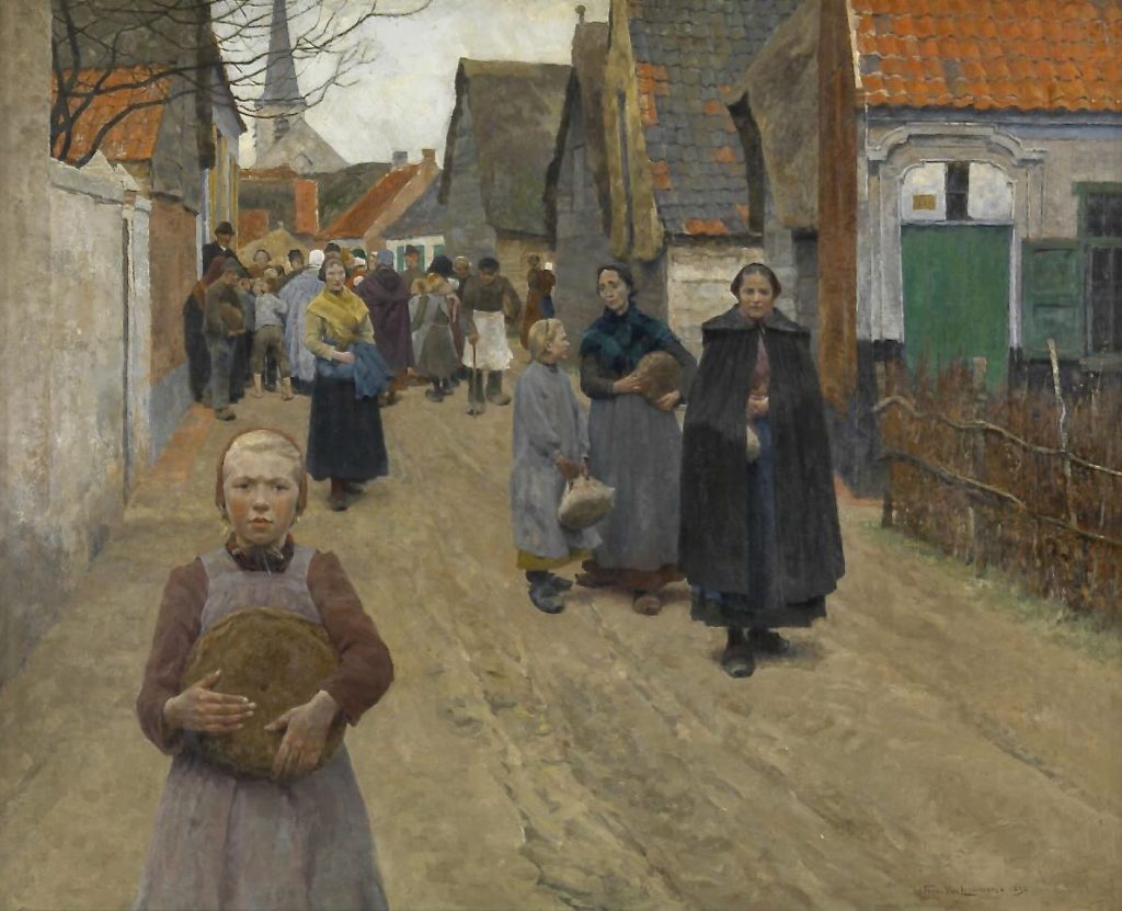 In het schilderij van Frans van Leemputten “Brooduitdeling in het dorp” uit 1892 ziet men hoe de vrouwen hun brood vastgeklemd houden onder de kapmantel. Ze laten het zich niet afpakken maar men bemerkt ook een zekere schaamte. Moeten leven van liefdadigheid tekent de mens. Het armoederisico lag in 2022 in het Vlaams Gewest (8%) lager dan in het Waals Gewest (18%) en het Brusselse Hoofdstedelijke Gewest (30%). In België in zijn geheel lag het armoederisico op 13% (51).