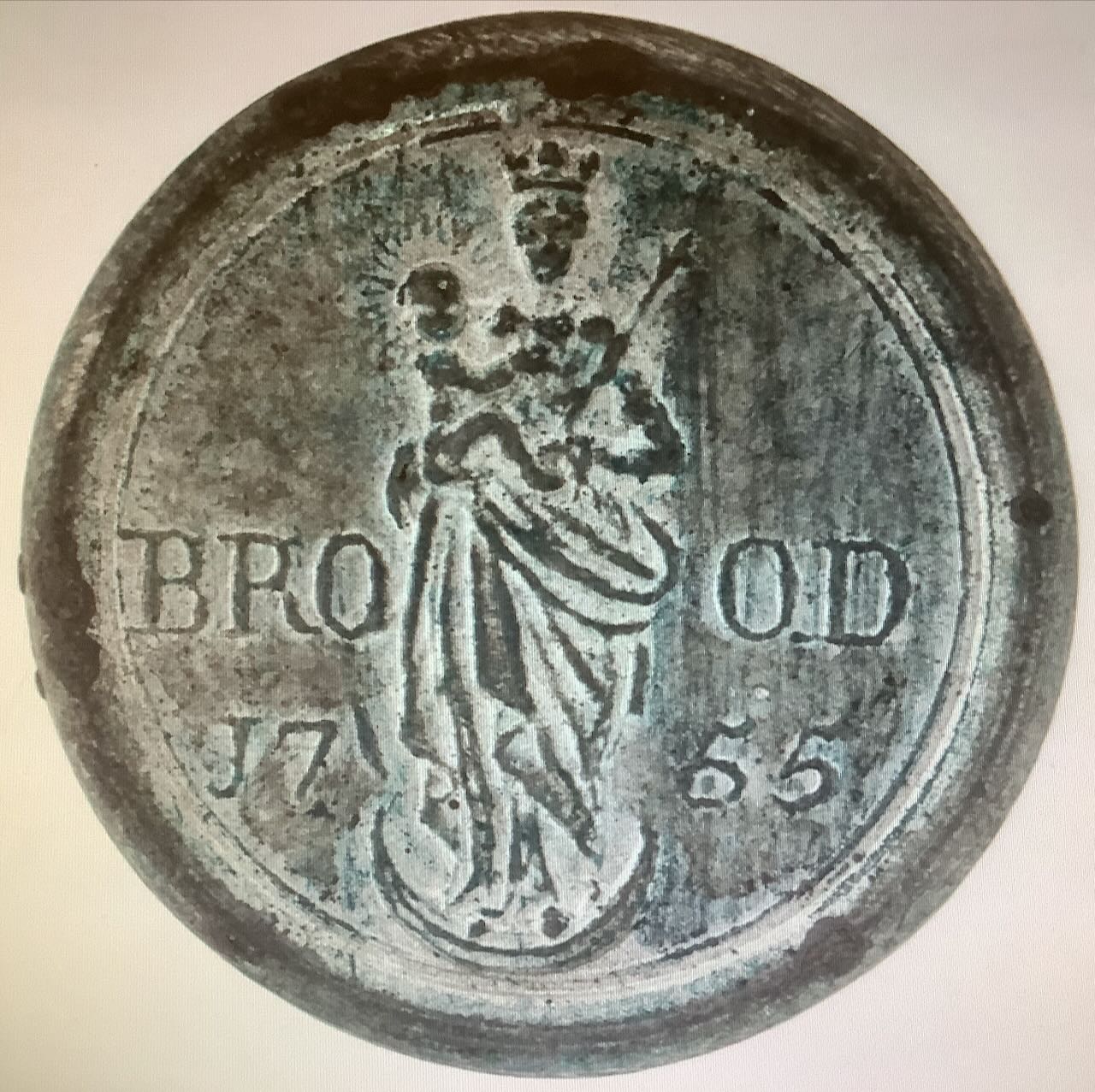 In 1680, bij de begrafenis van Jeanne-Françoise Romeyns, werden er 243 overlijdenspenningen gegoten. Elke loden penning had een tegenwaarde van 1 zilveren schelling of 2 broden.
